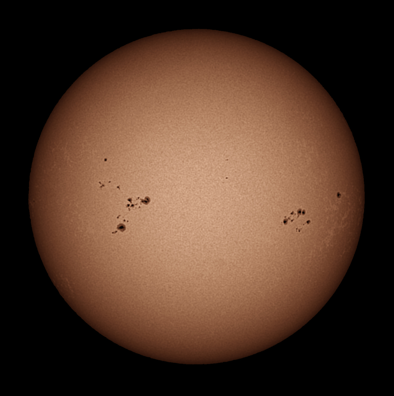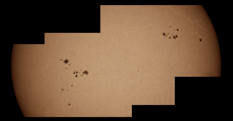 Ces jours-ci, le Soleil est constellé de jolies petites taches. La météo s'étant remis au beau, j'ai bien évidemment tenté de leur tirer le portrait. En cet automne, le Soleil commence à sérieusement baisser sur l'horizon et plus il va descendre et plus les turbulences des couches les plus basses de notre atmosphère vont être pénalisantes, avec à la clé une dégradation de la netteté des images. Mais çà reste montrable