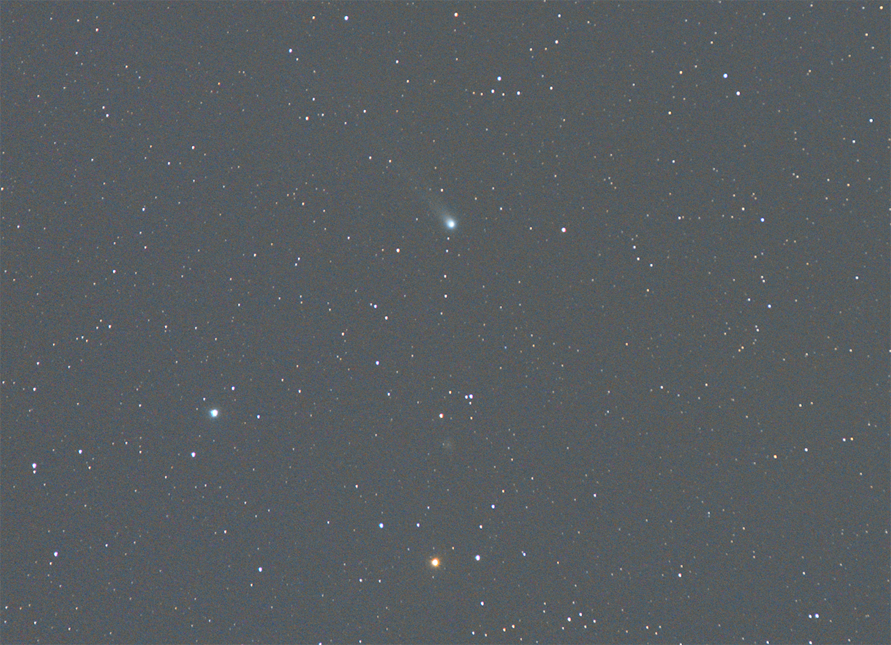 Et en zoomant un peu, on distingue une toute petite tache floue un peu au-dessous de la comète : la galaxie du Petit Moulinet (alias NGC3184)